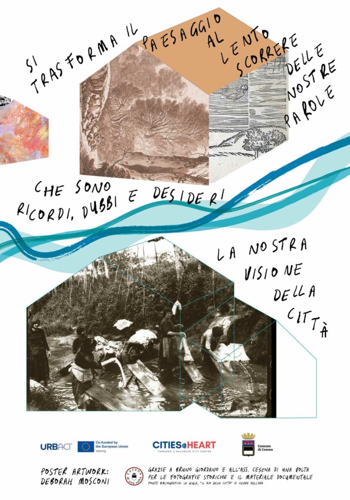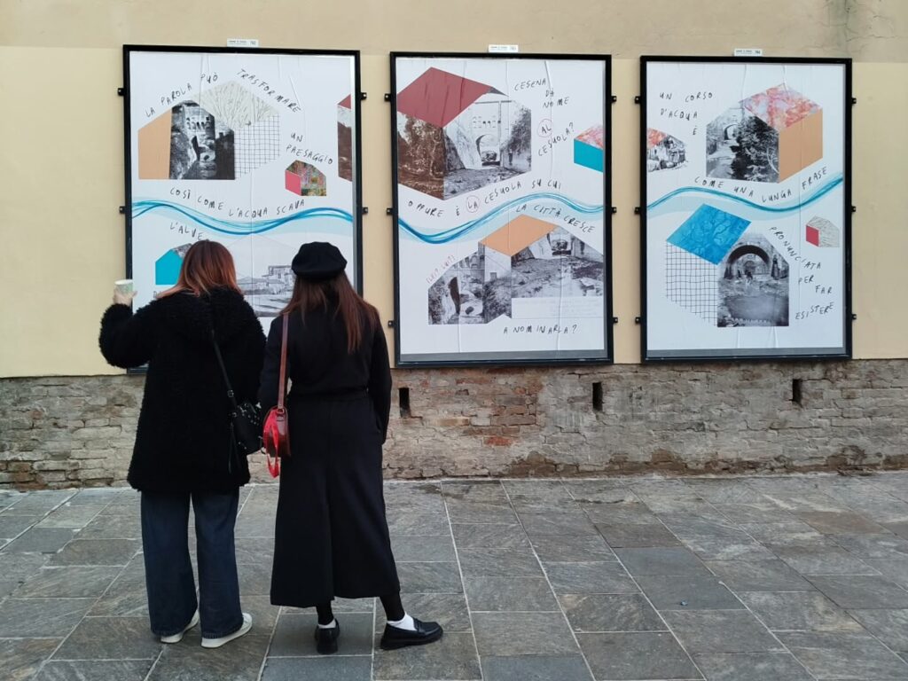 A ottobre 2025, in concomitanza con il design di un report di progetto, il Settore Progetti Europei del Comune di Cesena mi ha invitato a fare un primo intervento di poster art per nove pensiline installate in Via Pier Maria Caporali, zona sud della città. Questa prima serie di manifesti 140×200 cm inaugura una “open art gallery” come intervento urbano proposto dal gruppo di lavoro – composto da cittadine e cittadini – insieme ad altre azioni, finanziate dal progetto europeo Cities@Heart, al quale la città di Cesena ha partecipato con un percorso di analisi e raccolta dati sulla riqualificazione del centro storico della durata di un anno.